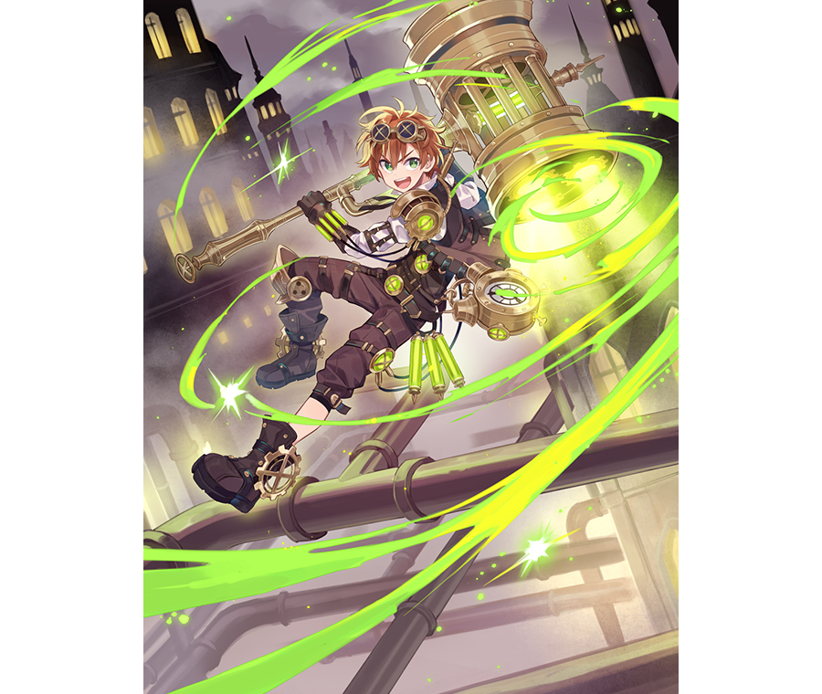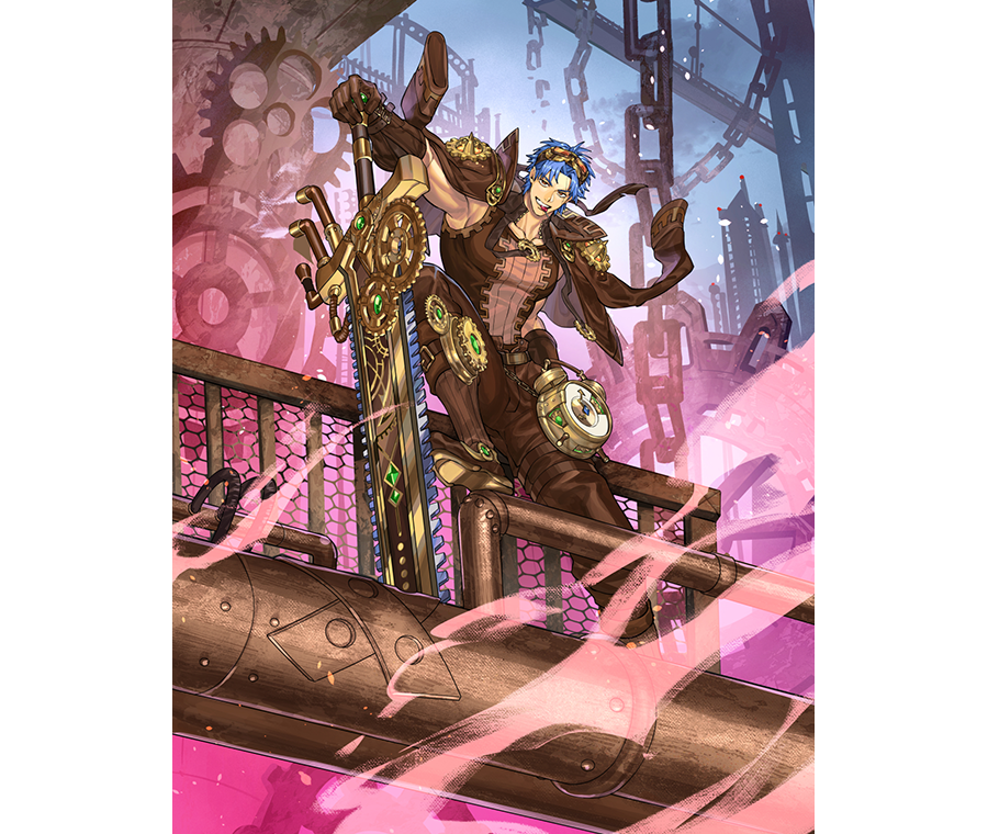 身材矮小的少年蒸汽戰士 加繆爾輕鬆地使用巨大得不成比例的錘子,因為他不是人類,而是齒輪編年史的生命體齒輪改造體。