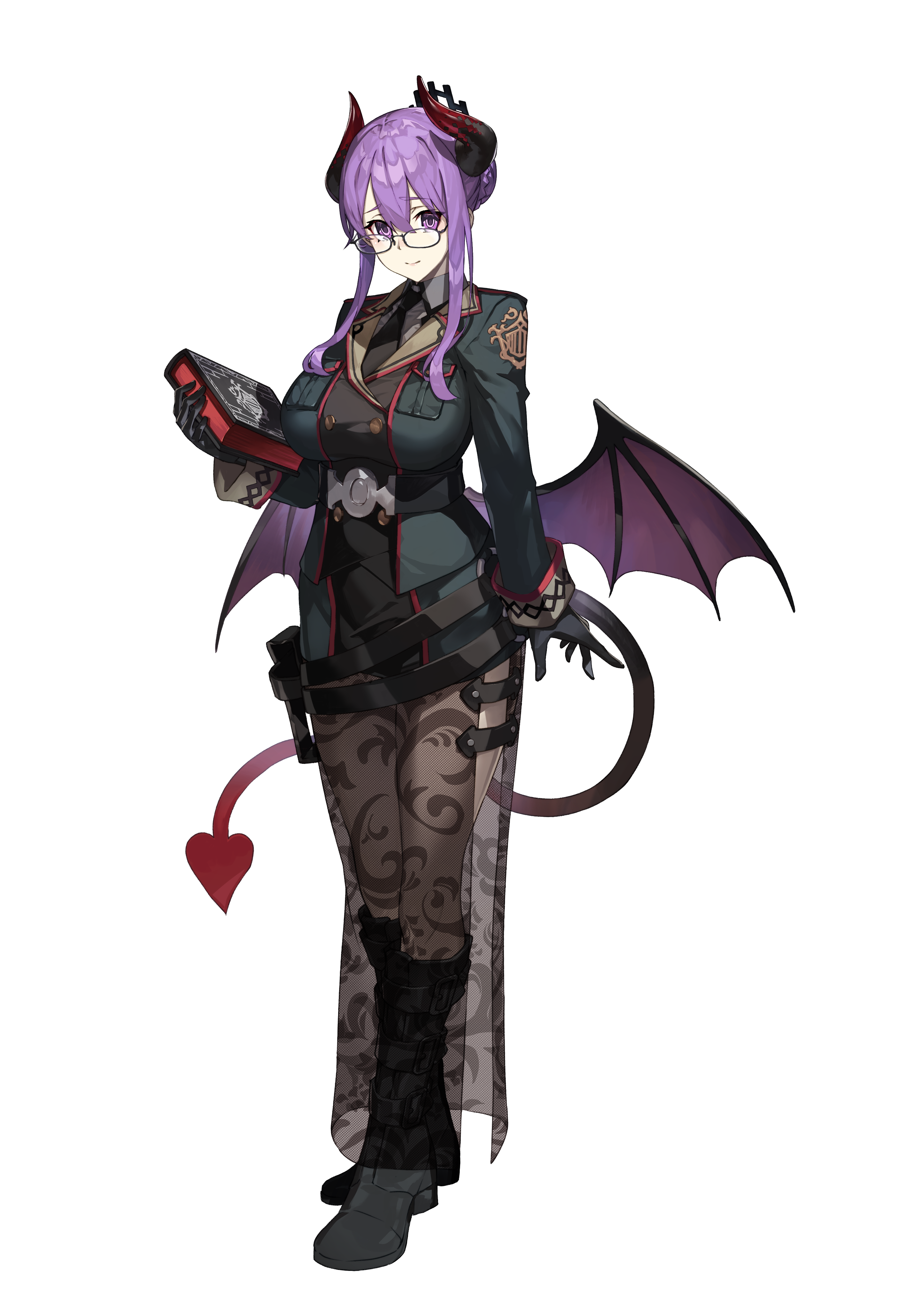 瘴氣般的紫色頭髮、同樣的紫色眼睛。臉的輪廓和五官還算端正,但不自信的表情和土氣的眼鏡讓她顯得頗為缺乏氣場。