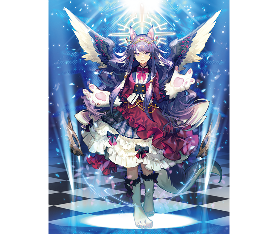 ・在利菲斯托爾的加護下,表面的意識是龍魂/愛意,身體是歐敵烏姆,外表則是黑白兩色混合的天使。